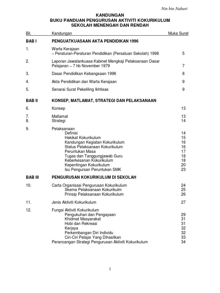 Buku Panduan Pengurusan Aktiviti Kokurikulum Sekolah Nin Bin Nabari Pdf