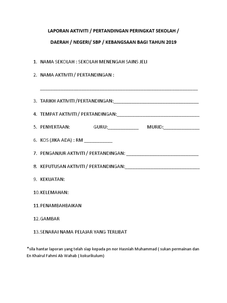 Format Laporan Aktiviti Sukan Kokurikulum Pdf